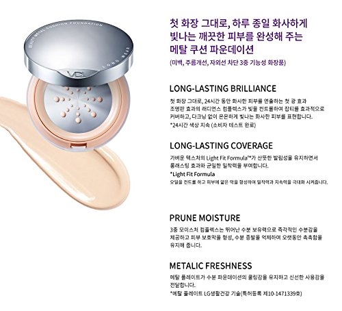 A metal cushion foundaion that delivers a 24 hour-lasting, bright and clear skin and provides a glowing radiance through hydro-rich prune water.