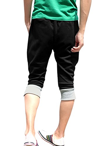 Allegra K Men Drawstring Elastic Waist Buttoned Leg Opening Capris Pants