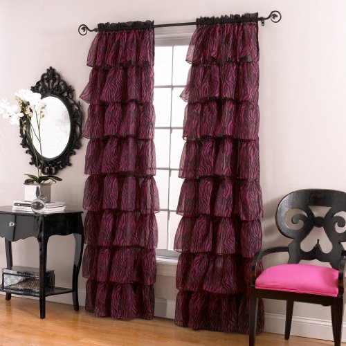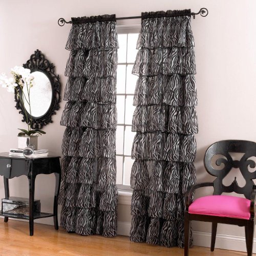 Elegant, zebra printed ruffled panel uses cascading layers of soft, crinkled voile to create an elaborate bouffant styled panel. 63" long panel features six layers while the 84" length features eight layers.Feature