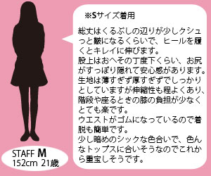 | サイズ | 総丈 | ウエスト | ヒップ | もも幅 | 股上 | 股下 | 裾幅 |