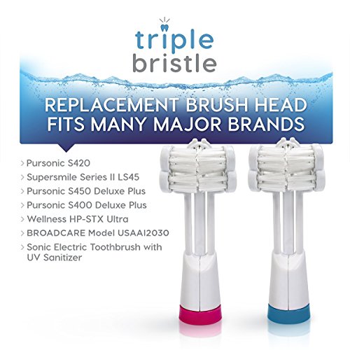 *NOTE* FITS ONLY THESE BRANDS - Triple Bristle Brand Toothbrushes, Pursonic S420, Supersmile Series II LS45, Pursonic S450 Deluxe Plus, Pursonic S400 DELUXE PLUS, Wellness HP-STX Ultra, BROADCARE Model USAAI2030 Electric Toothbrush DOES NOT SONICARE® Brand Toothbrushes 0