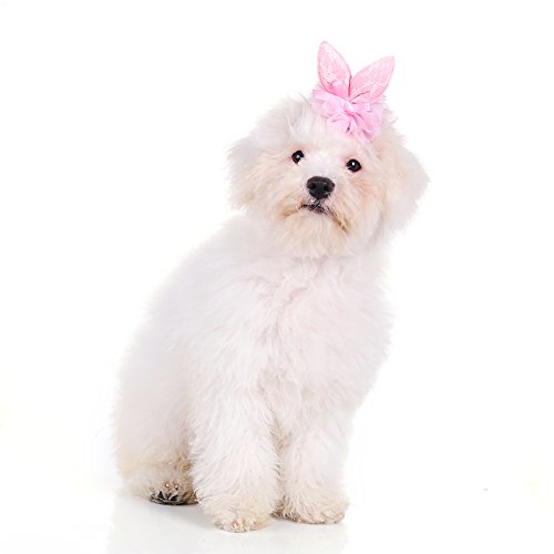 -. Title : Fashion Pet Dog Puppy Hair Clips Button Design Chihuahua Yorkshire Hairpin Grooming Pink Rabbit Ears&Lace by Awtang