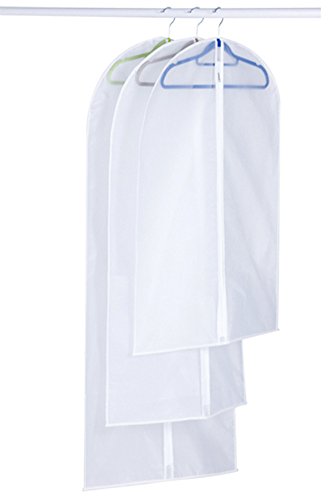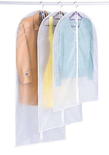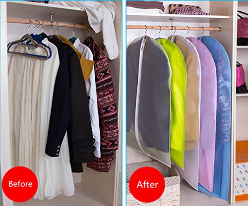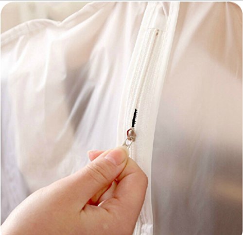 -. Feature : WASHABLE SUIT COVER WITH ZIPPER: This set of 5 garment bags and the perfect lightweight staple for all your storage and travel needs. Made from industry-leading, light material that is thick yet breathable, they protect and preserve your clothes, ensuring they stay fresh. The generous 40 inch length provides plenty of space for your suit or other garments, without being too unwieldy to take on travel or fit in a closet. / ONE PACK OF 5 : Suit / garment covers with full length zip. Size 35inches long x 24 inches wide (60*90cm)approx. Ideal length for suits, shirts, trousers, tops, sport coats etc. / PREMIUM PEVA MATERIAL: Made from industry-leading, polyester material that is thick yet breathable, each garment bag protects and preserves your clothes from harmful elements during travel or storage, keeping them fresh. / EASY TO TRANSPORT, BUILT TO LAST: ideal length for suits, shirts, pants, tops, jumpers etc.Avoid wrinkles,Water-resistant,dust resistant and mildew-resistant. In addition to the protective yet breathable nonwoven mesh material and clear see-through material. / PERFECT FOR TRAVEL: Could be washing, folding, and reused for a long time. Stop stuffing all of your suits in one suitcase or garment bag. With this 5 units in ONE set, each of your suits or dresses can have their own cover and room to breathe. This prevents suits from getting musty or crumpling together and losing their crisp, ironed look. Our garment bags also work well with a dress, gown, coat, uniform, suit, pants, tuxedo, or other pieces of clothing.