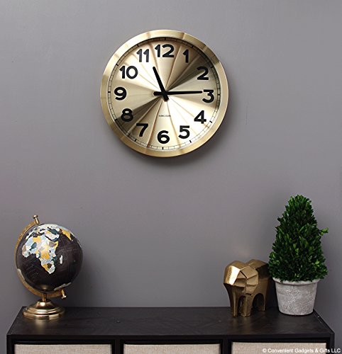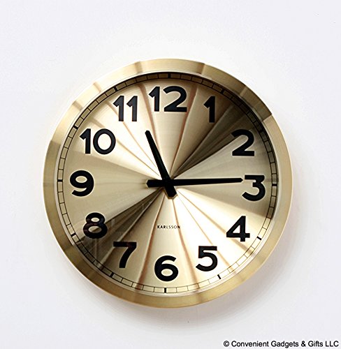 The station wall clock from karlsson brings a touch of retro charm to your decor with the simple elegance of a train station style clock. features sweep movement and a gold face with black numbering. made of aluminum. requires one aa battery (not included.) karlsson is an internationally renowned dutch clock brand and is sold all over the world. the karlsson brand is one that's synonymous with good quality, stunning graphics, aesthetic shapes and innovative design.Feature