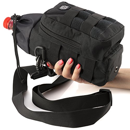 Water Bottle Carrier and Holder Bag - Molle Pouch Black Tactical for Hydration - Sport Travel Bicycle and Hiking 16 oz to 64 oz-Carrying Straps for Hand and Shoulder with Waterproof Pocket by P&P4EVER