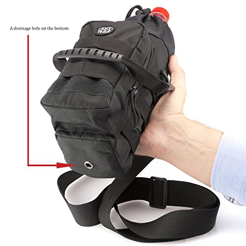 - [INCLUDES CARRY STRAPS] – Molle Water Bottle Holder comes complete with a convenient shoulder and hand strap for better travel and carrying portability.It is slim,and light-weighted,easy to take and carry.Besides,its leisure,simple design.The main compartment of the pouch is thickly padded and associated with a Drain hole.DIMENSIONS: 9.8"H X 3.5"D;