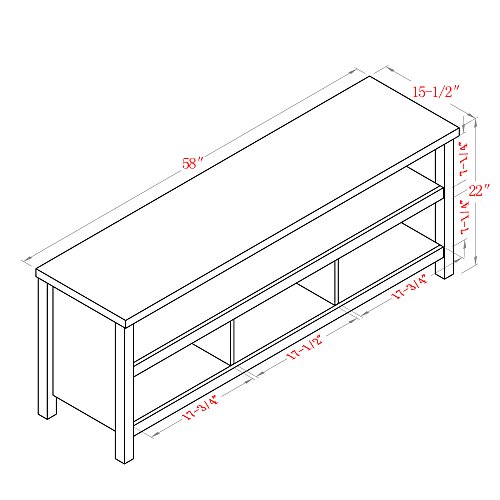 Dimensions: 58 " W x 15.5" D x 22" H, assembly required with manual