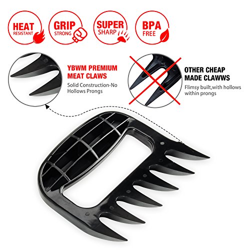 Meat Shredder Claws For Pulled Pork, YBWM Solid and Ultra-Sharp Blades BBQ Tool Meat Handler Forks for Shredding Handling & Carving Food, Barbecue Pulling Pork Shredder Claw Set of 2( Black)