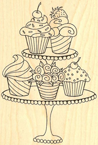-. Title : {Single Count} Unique & Custom (2 3/4" by 4" Inches) "Baked Goods, Yummy Treats, Cupcake Platter" Rectangle Shaped Genuine Wood Mounted Rubber Inking Stamp