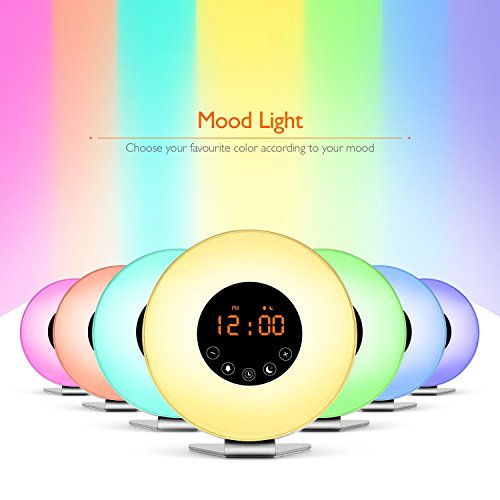 ☀ Multicolor Mood Light --- Change the color light according to you mood. The color lights include cream white, blue, green, orange, red, purple and indigo. Enjoy the colorful life from Fiery Youth sunrise alarm clock!