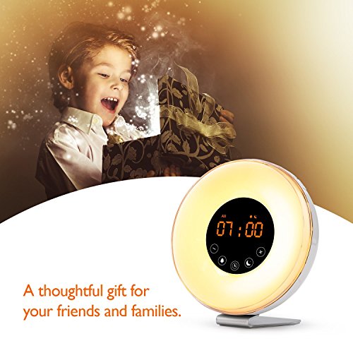 ☼ [WAKE UP WITH GENTAL SUNRISE] Inspired be natural sunrise, gently prepare your body to wake up. Give you a brand new start every morning. At night, it can help you to fall sleep with the natural light like sunset. The wake-up lights has 18 light bulbs for brighter light. There are 10 levels of brightness as well. It would be a very thoughtful gift for your family and friends, especially for your kids.