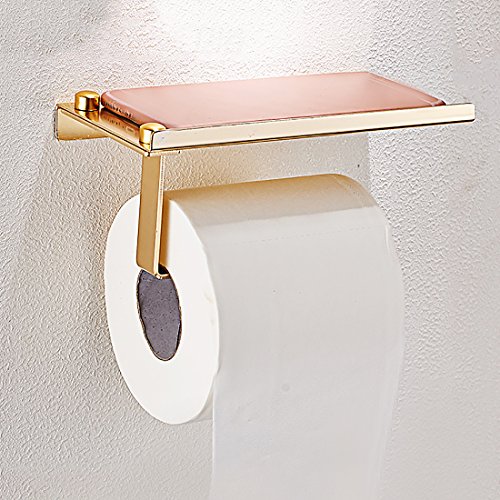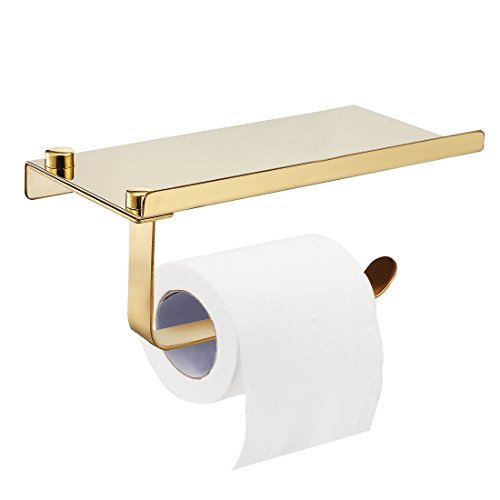 uxcell 201 Stainless Steel Polishing Wall Mount Toilet Tissue Holder w Storage Shelf