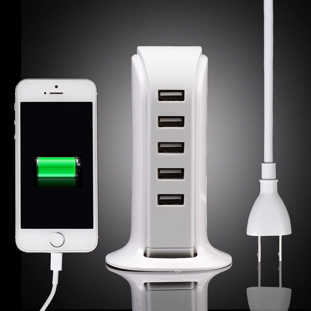 Pengisi daya dengan USB 5Port dan konektor EU/US/UK
