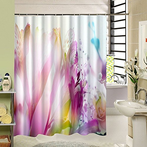 EZON-CH Customize Waterproof Modern Pink And Purple Flower Print Polyester Fabric Bathroom Shower Curtain£¨66IN X 72IN)