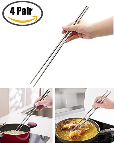4 Pair Extra Long 14 Inch Stainless Steel Hot Pot Chopsticks for Cooking Frying Noodle