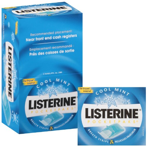 Listerine Pocket Paks Oral Care Breath Strips (Cool Mint), Kills Germs for Fresh Breath - 12 Packs (24 strips per pack)