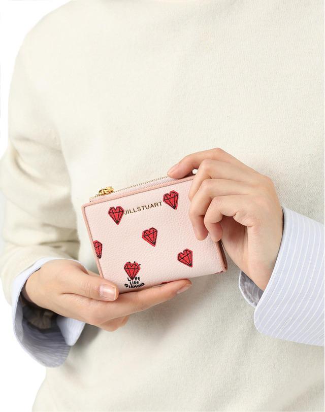 레드 컬러의 질 스튜어트 하트 다이아몬드 패턴으로 귀여운 반지갑입니다.