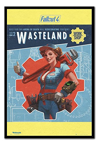 -. Title : Fallout 4 Wasteland Work Shop Poster Magnetic Notice Board Black Framed - 96.5 x 66 cms (Approx 38 x 26 inches)