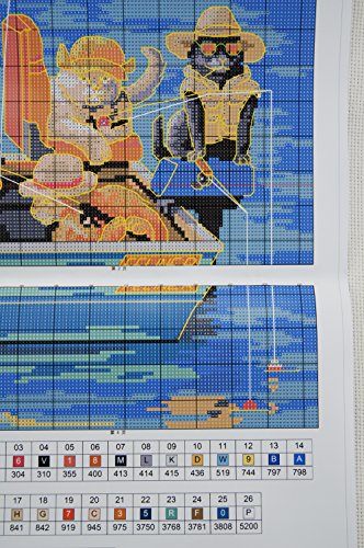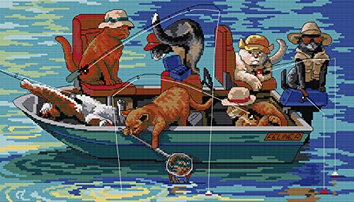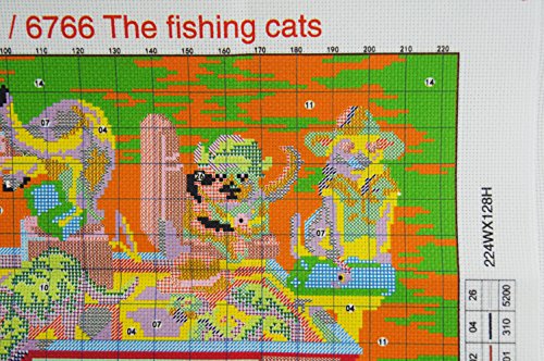 Crossdecor Needlepoints Stamped Cross Stitch Kits Cross-Stitching Pre-printed Pattern, Fishing Cats