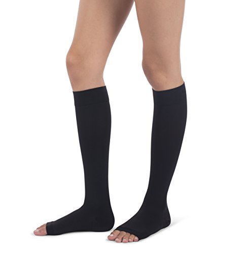 Jomi Surgical Collection 221, Medical Weight Compression Knee Highs, 20-30mmHg - Open Toe, Full Calf (Medium, Black) / Fits patients with wide calf