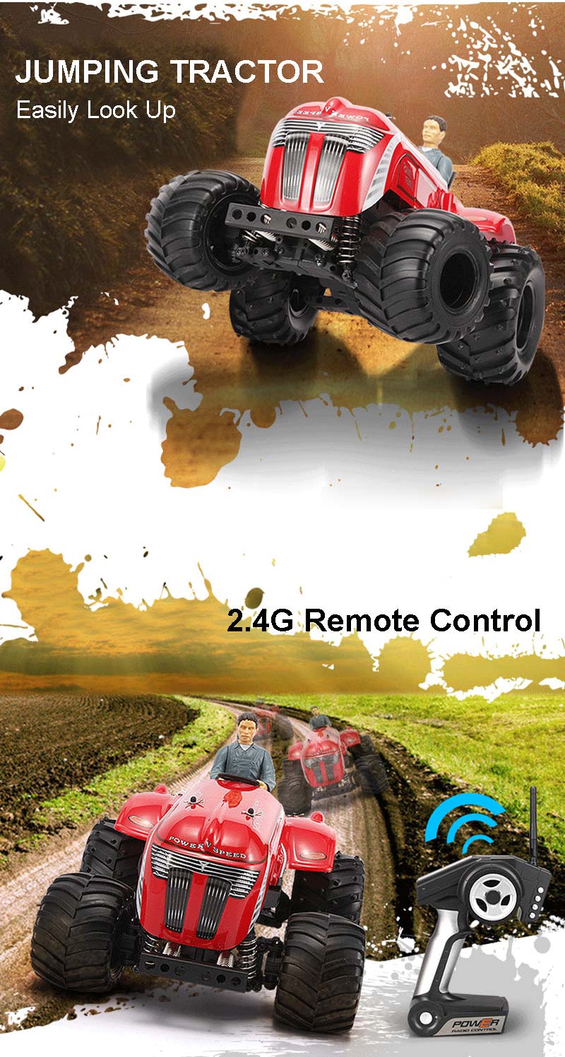 This WLtoys P949 RC tractor is in shape of the European heavy tractor simulation, strong power can easily look up, and the highest speed can up to 35KM/H.
