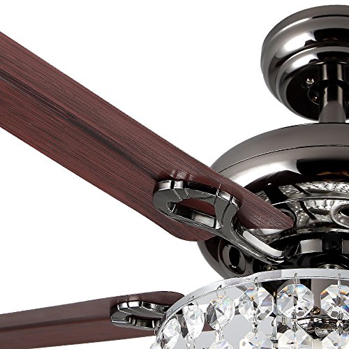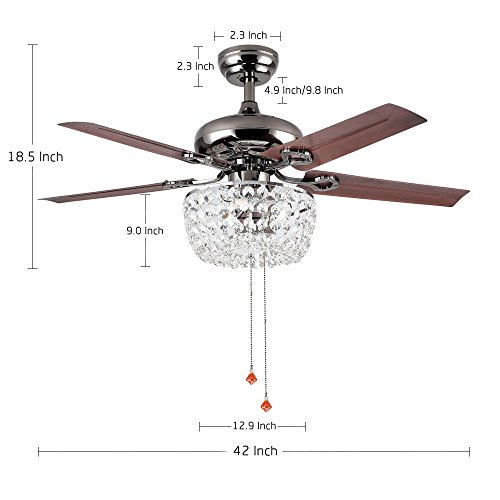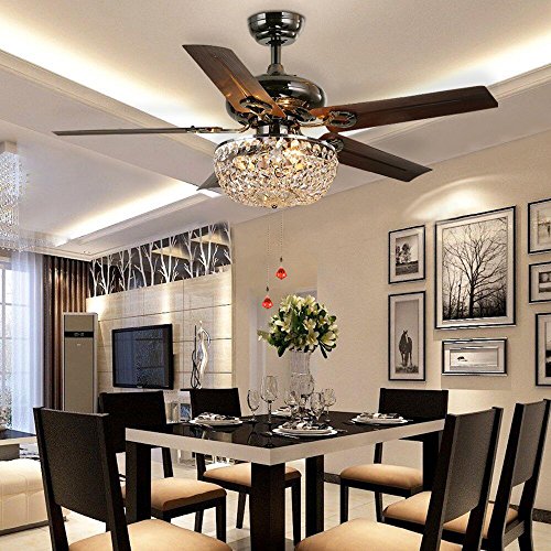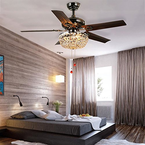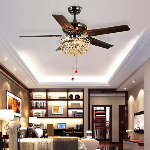 LuxureFan Retro Crystal Ceiling Fan Light with Elegant Crystal Cover and 5 Premium Metal Leaves Elegant for Modern Living Room Restaurant Pull Chain Control of 42Inch