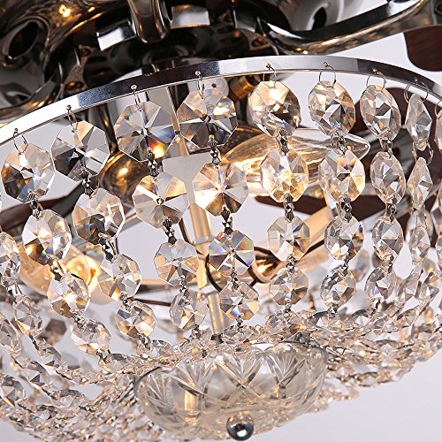 The Flushmount Ceiling Fan Light Use Elegant K9 Crystal Lampshade for Bright Light and Translucent Strong but Soft not Dazzling and Protect the Eyes of Your Family and to Enjoy Your Leisure Life