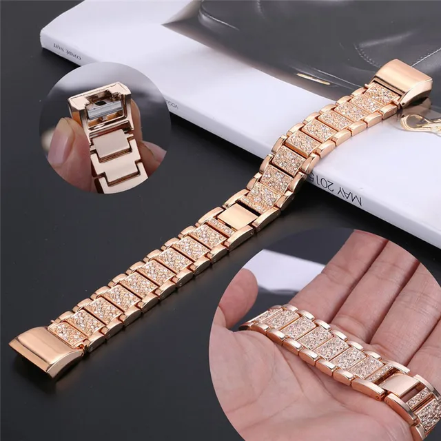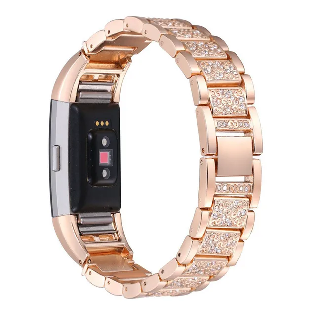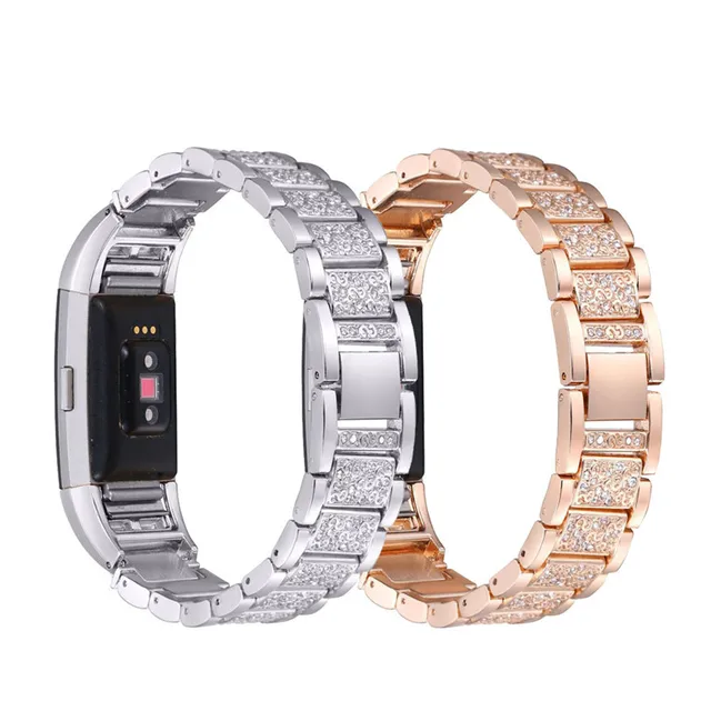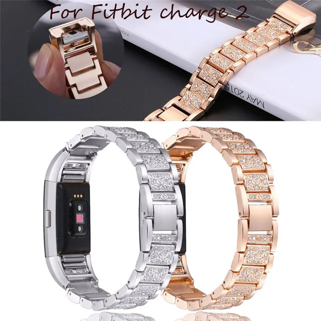 뜨거운 2017 새로운 패션 높은 품질 크리스탈 스테인레스 스틸 시계 밴드 손목 스트랩 핏 비트 충전 2 스마트 시계 Levert 수송선