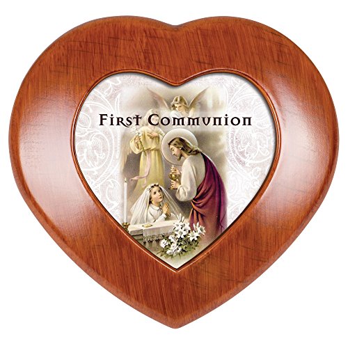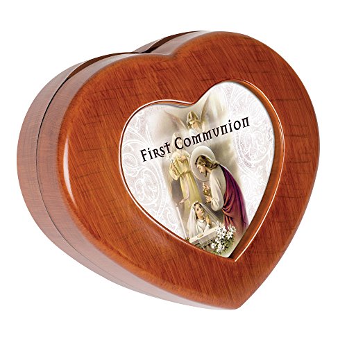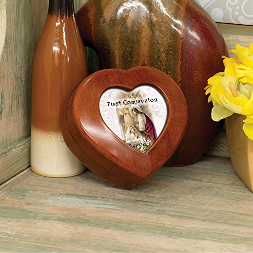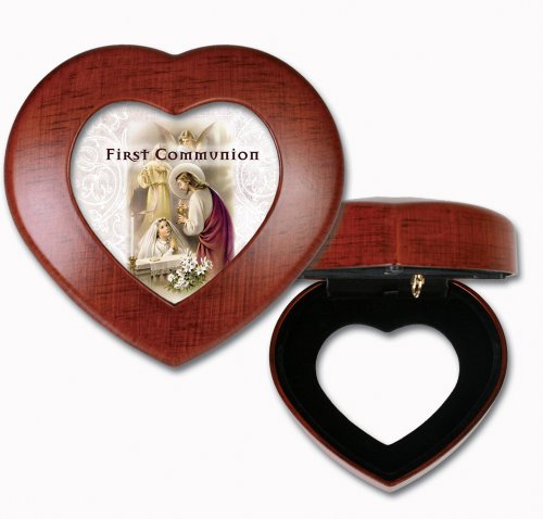 First Communion Praying Girl Woodgrain Mini Heart Music Box / Jewelry Box Plays Ave Maria