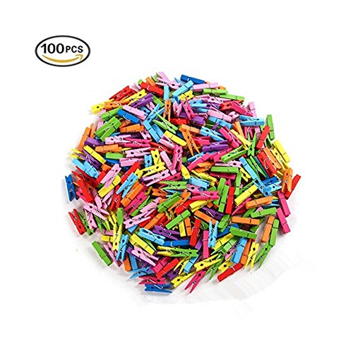 Gospire 100 Pieces Mini Colored Natural Wooden Clothespins Photo Paper Peg Pin Craft Clips with Twine