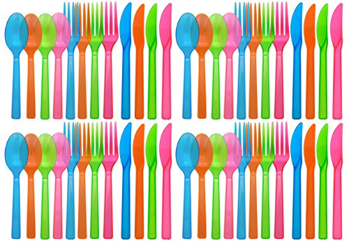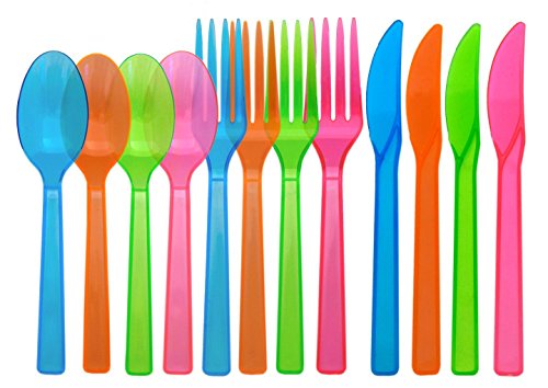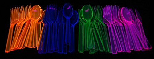 Assorted Neon Blacklight Reactive 48 piece Plastic Cutlery Set