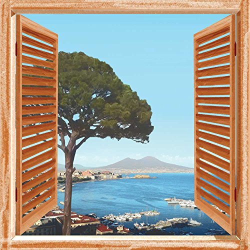 3-D Wallpaper Quick Trompe (adesivo) S-Q23 "Finestrella a Napoli" Optical Illusion window view of Mt Vesuvius Naples Italy