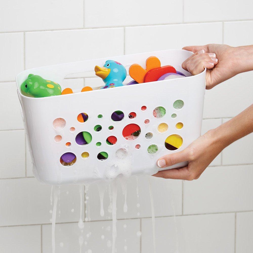 InterDesign Power Lock Suction collection sticks to smooth impermeable surfaces such as tiles, glass, fiberglass and some metals.