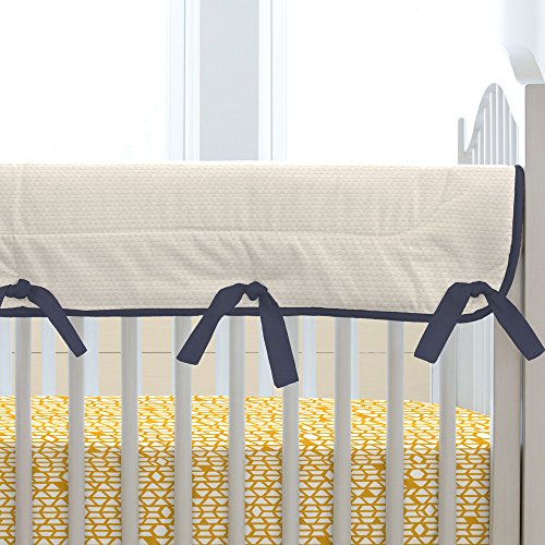 -. Feature : Single (1) rail cover / Measures 50" long by 18" wide / Folds over top of crib rail / Reversible / Made in the USA
