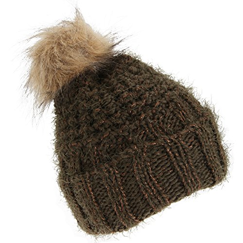 (Foxbury)/Accessories/Cold Weather Accessories/DIRECT FROM USA/Foxbury Womens/Ladies Chunky Winter Hat With Faux Fur Bobble
