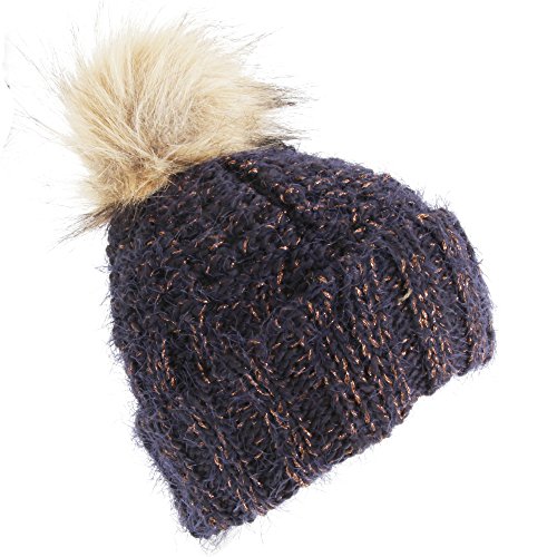 Product Description Womens winter hat with a faux fur bobble. Great to keep you warm during the winter months. 67% Acrylic, 17% Nylon, 11% Polyester, 5% metallized fibres. Handwash only. 0