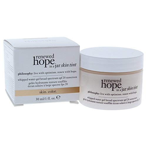 Studio : Philosophy Publisher : Philosophy Binding : Misc. Product Description Renewed hope in a jar is blurring the lines between makeup and skin care with new skin tint. powered by nature - H2O and Wu Zhu Yu fruit extract, this whipped water-gel formula offers the all-day hydration and glow benefits of our breakthrough renewed hope formula, plus buildable coverage of a foundation- for flawless-looking skin with a healthy, shine-free glow. each shade has been masterfully mixed to flex to a wide range of skin tones. - Clinically proven - 93% of women showed an instant increase in moisture* - Medium buildable coverage, broadspectrum SPF 20 - Contains wu zhu yu fruit extract for a healthy-looking, shine-free glow Net Weight: 30 ml / 1 oz. 0