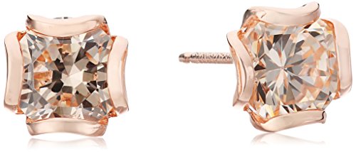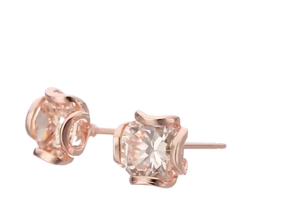 Rose Gold Plated Sterling Silver Round Champagne Cubic Zirconia 6.5mm Flower Basket Stud Earrings