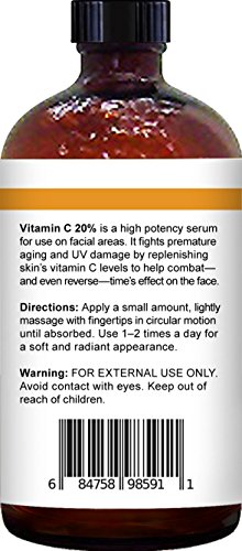 Vitamin C serum for face is a high potency serum for use on facial areas. It fights premature aging and UV damage by replenishing skin's vitamin C levels to help to combat and even reverse the signs of aging. Stabilizing skin's levels of vitamin C helps to counteract wrinkle formation. Vitamin C protects against UV damage such as discoloration and fine line.