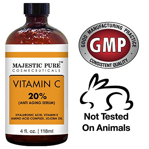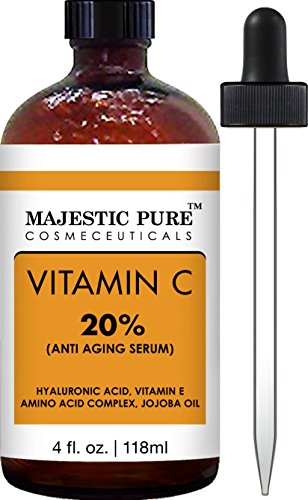 Vitamin C Serum by Majestic Pure is one of the most potent skin serum systems available today. It's the highest grade Vitamin C Serum on the market! It will leave your skin beautiful and radiant. Vitamin C Face Serum is made in the USA with the highest quality natural and organic ingredients available: 98% natural, 70% organic. It does not contain alcohol, parabens or sulfates. Vitamin c serum for your face combing with vegan hyaluronic acid is the absolute highest quality face serum available.