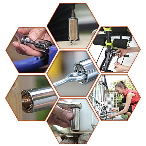 - ✅ Universal Ratchet Socket Set, Fits standard 7mm(1/4") to 19mm(3/4") bolt heads, The square hole size at the back of the universal socket is 3/8"