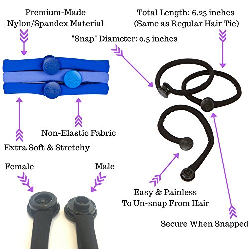 -. Title : Snappee Snap-Off Hair Ties - For Curly/Thick/Natural Hair & Buns/Ponytails/High Puffs/Top Knots, Hand-Made with Ouchless, Premium, Long-Lasting Soft & Stretchy Material for No Snagging/Pain!