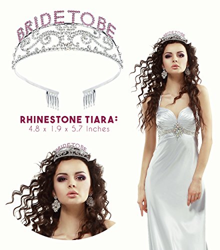- BRIDE TO BE TIARA: Give your celebrations a princess' touch with the "Bride To Be" jeweled Tiara crown, with gorgeous glittering rhinestones. The words "Bride To Be" are written in a bright pink font.