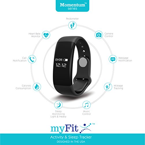 [New] myFit momentum Fitness Activity Tracker version 2.0 with Heart Rate Monitor & Automatic Sleep Detection Watch Wrist Band Heart Rate Monitor calorie distance step bit counter (30 minute charge)
