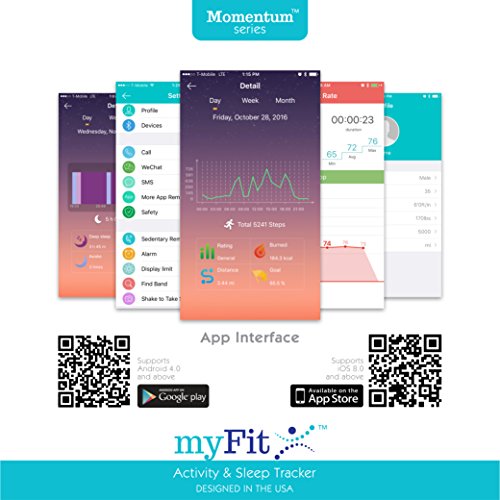 COUNTLESS FEATURES: myFit Momentum's HeartSense™ heart monitor, light and heavy sleep tracker (sleep time & sleep quality), pedometer, distance, calorie measurements, anti-lost reminder (phone out of range alert), smart alarm clock, sedentary reminder after one hour of non-activity (does not ring when asleep), call notification, shake photograph, push message, one key function, sports goal setting, and sports information sharing.