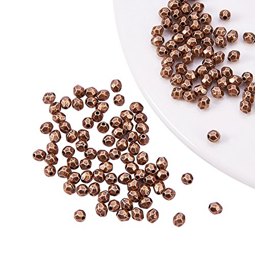 Pandahall 1000PCS 4mm Red Copper Oval Faceted Tibetan Silver Bead Spacers, Lead Free & Cadmium Free