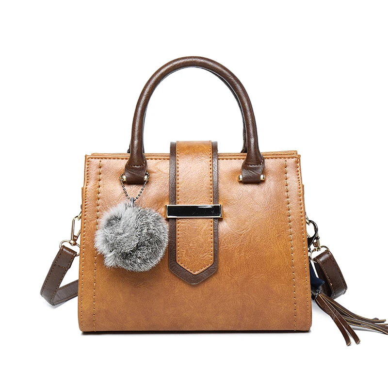 Vintage Women Bags Leather Fur Ball Ladies Handbags Luxury Brand Women Leather Handbag Vintage Designer female shoulder bag 2017