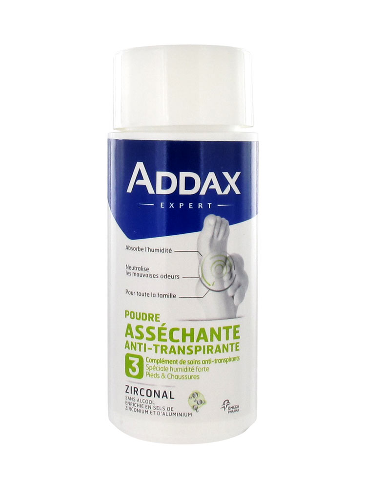 Addax Feet Anti-Perspirant Drying Powder Zirconal 75g reduces excessive perspiration, neutralises the bad smells and protects the skin from the bacterial and fungic development.
