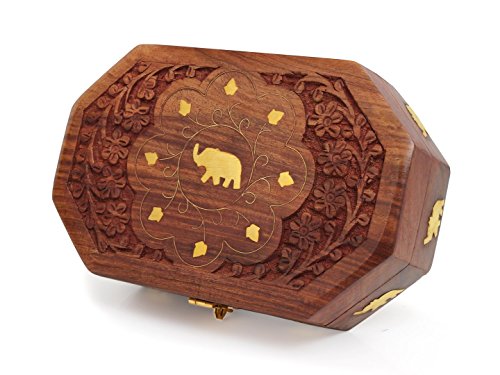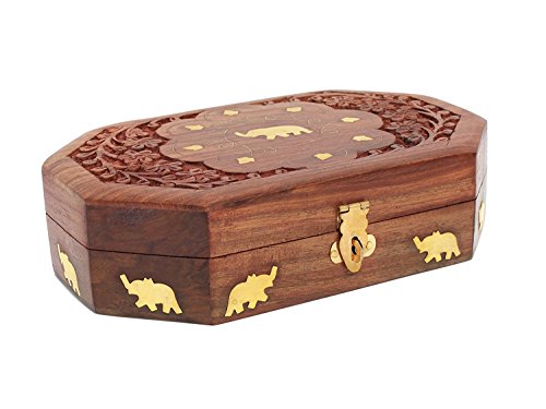 Mothers Day Gift Beautiful Handmade Wooden Jewelry Storage Keepsake Box with Brass Inlay Velvet Interior
