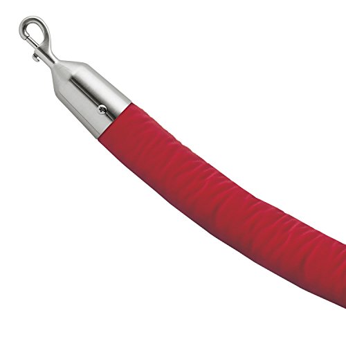 Lavi Industries Velvet Rope with Snap Hooks, 6 feet long, Cardinal Red and Satin Stainless Steel